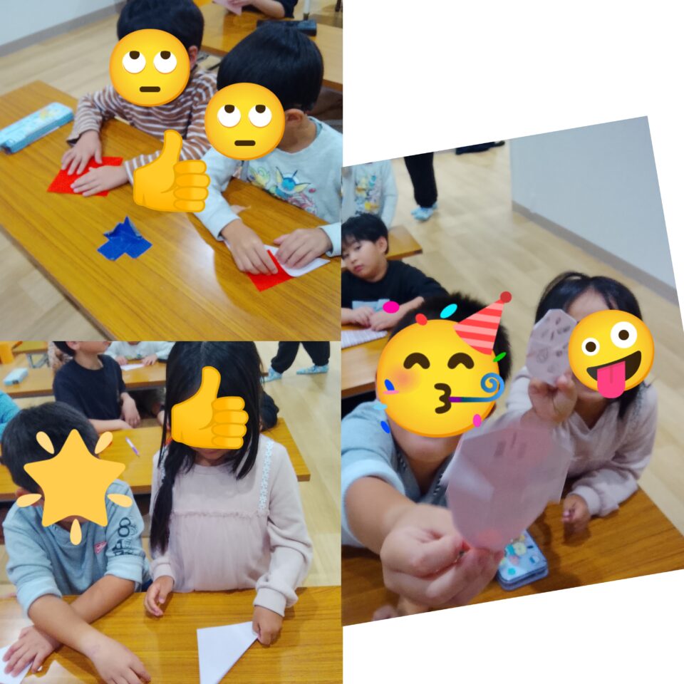 折り紙制作では、折り方の手順をしっかり確認しながら、手元を見て一生懸命に折る姿が印象的でした。