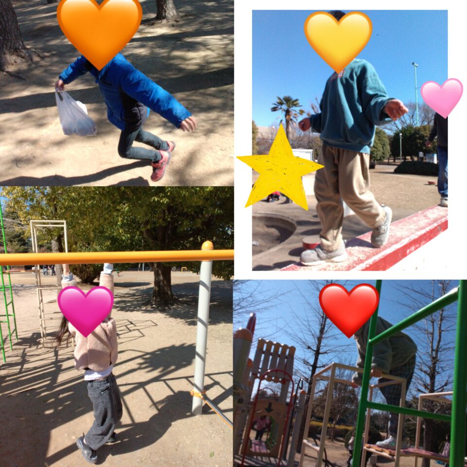 ミニアスレチックではうんていに挑戦する姿や、「見てて!」と得意気に体を動かす姿も見られました。追いかけっこでは元気いっぱい走り回り、たくさんの笑い声が公園に響いていました☺️