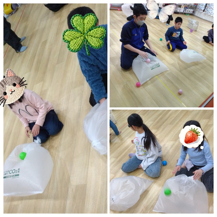 今日はみんなで「ゴミ袋バズーカ」ゲームをしました😊