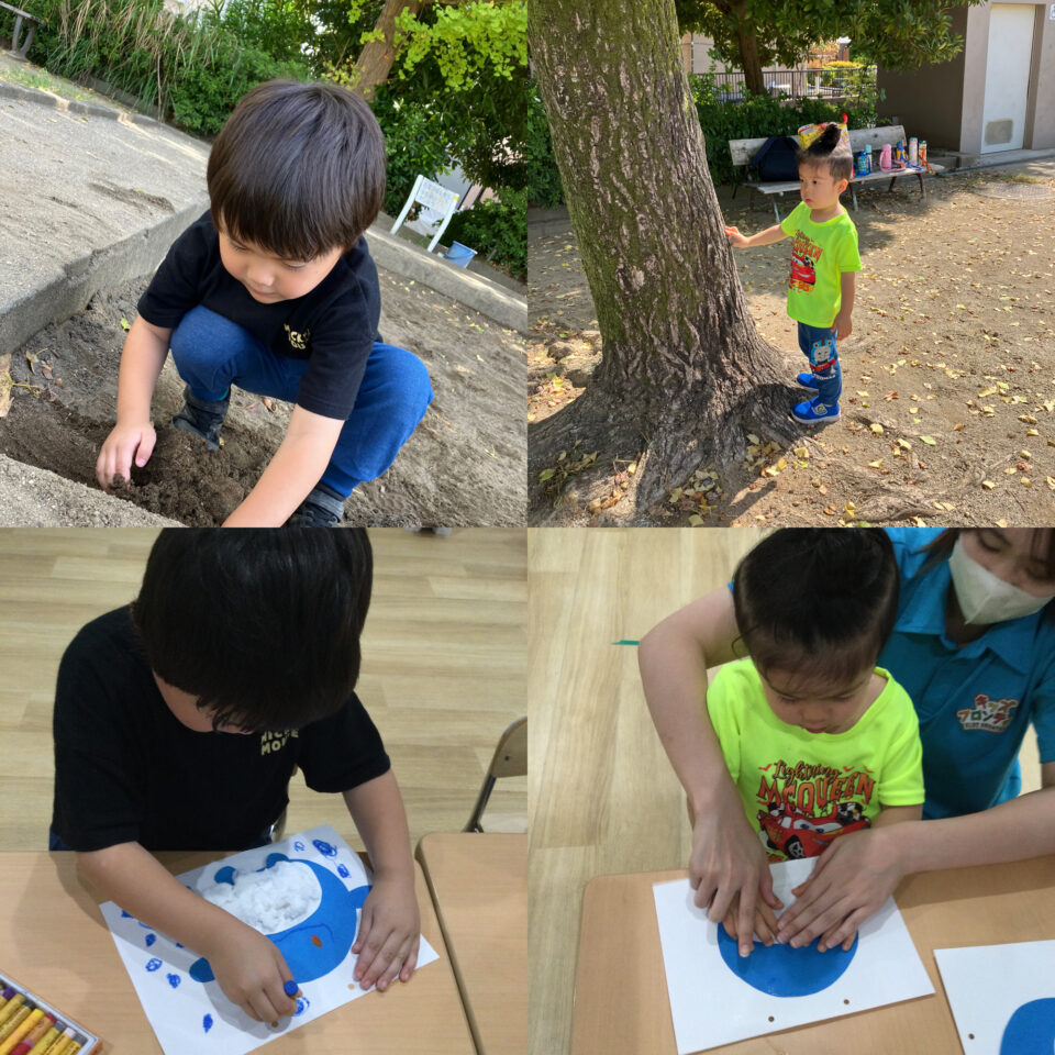 砂場でお山をつくるお友達など各々で公園で過ごしています♪