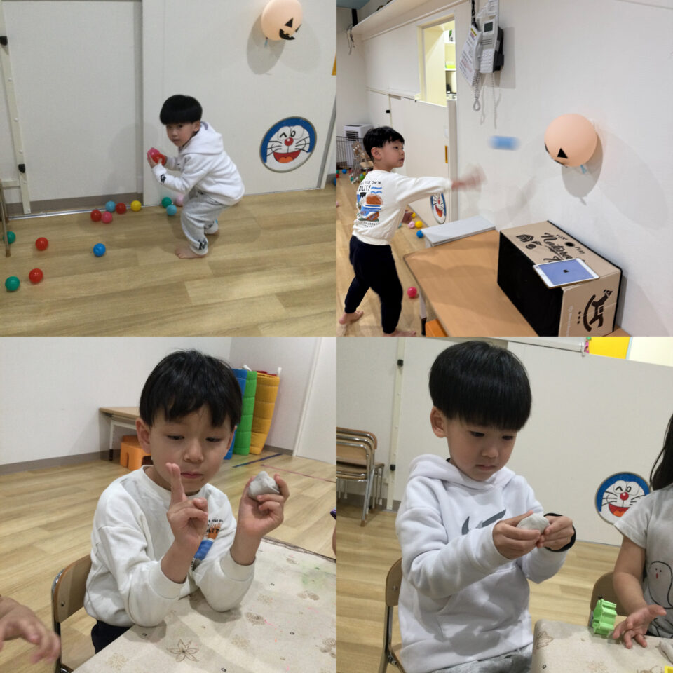 カラーボールが風船に当たると嬉しそうな表情でした😊