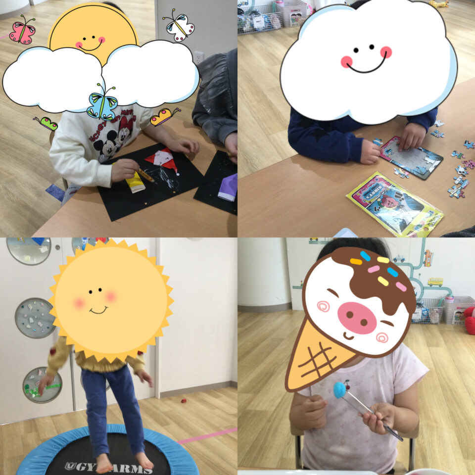 お箸の練習や絵本を一緒に読んでみたり、おはじきを入れたりと集中して取り組んでいます✨