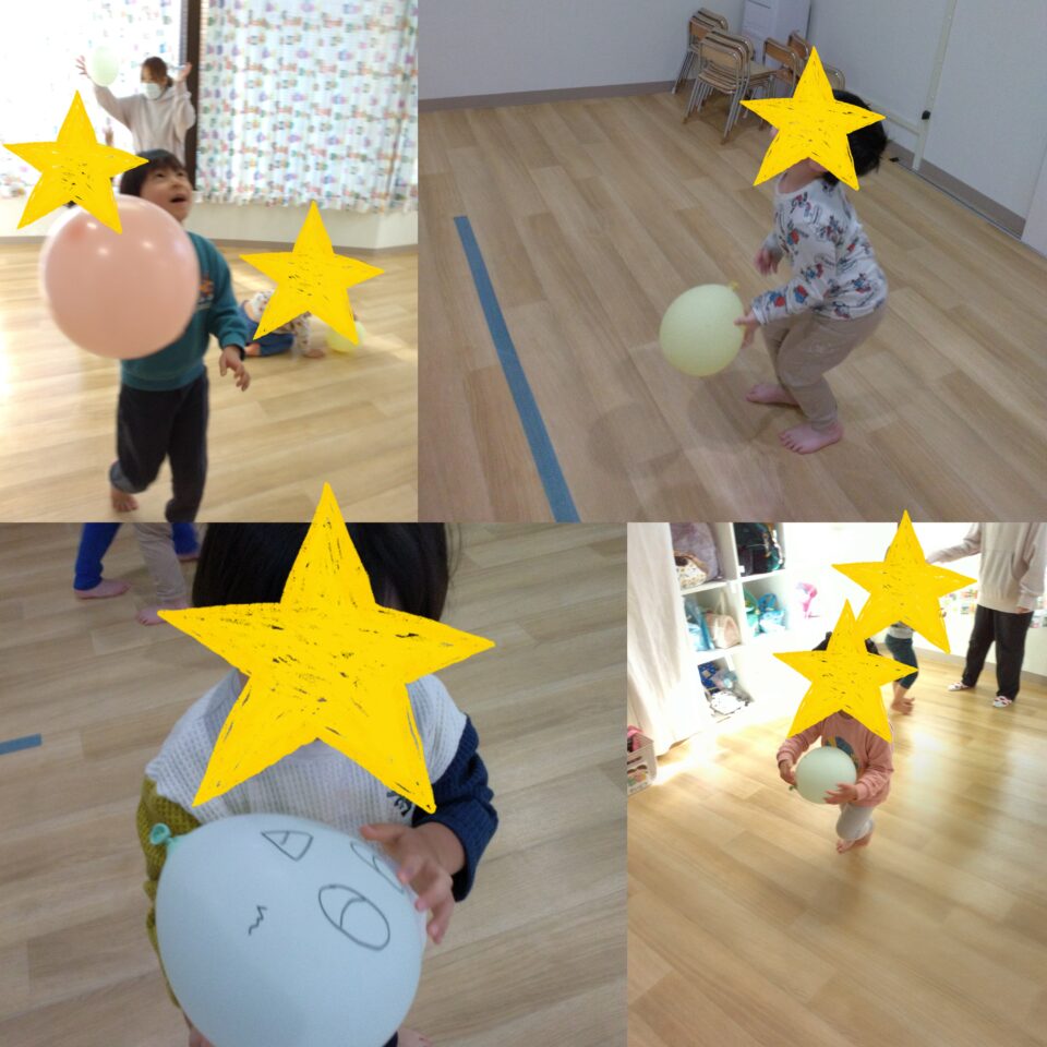 風船を下から上にポンッ!と叩いて飛ばす遊びです。