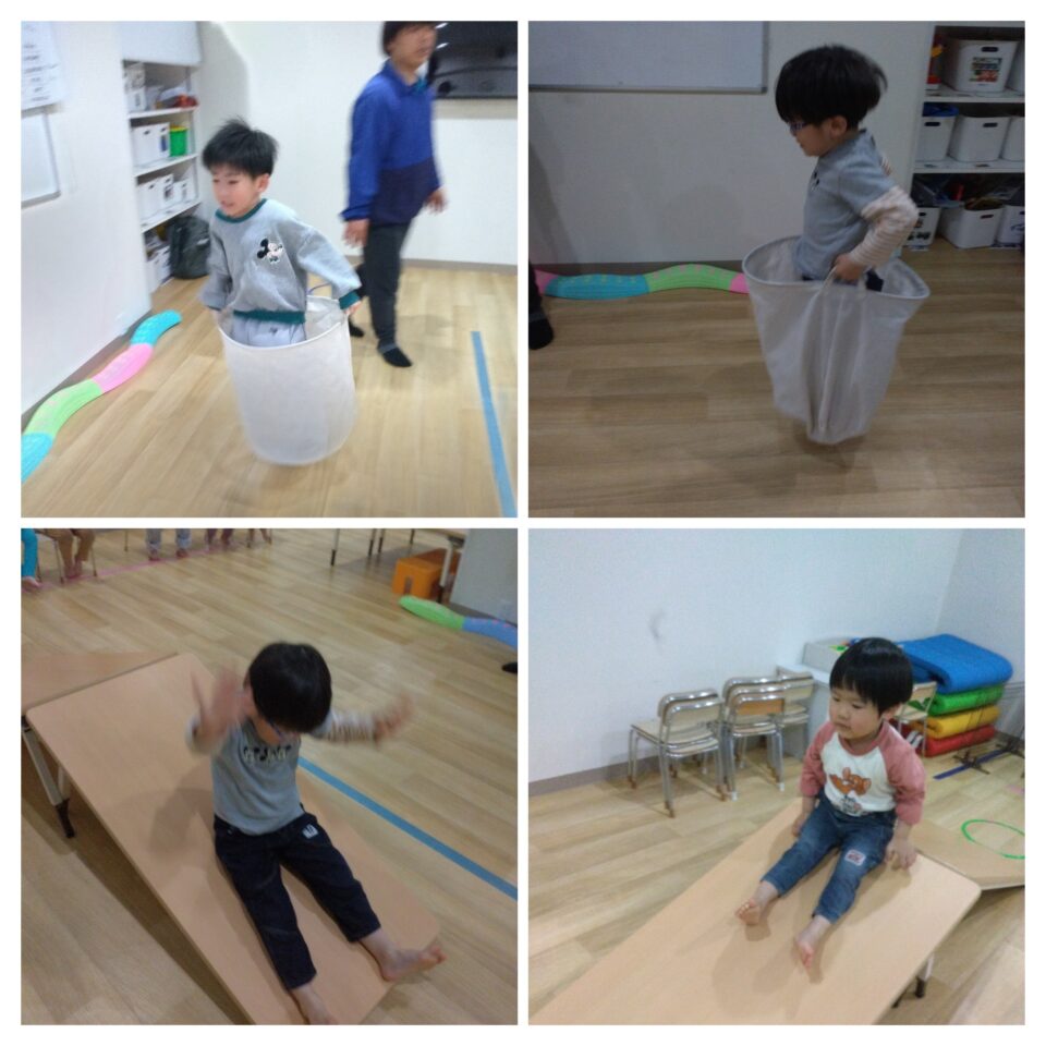 本日は、お部屋のスペースをフルに使って挑戦した「室内サーキット運動」の様子です!