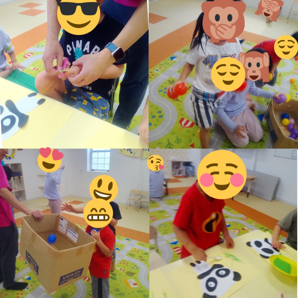 午後はみんなでカラーボールを使って「玉入れ」を行いました🥎