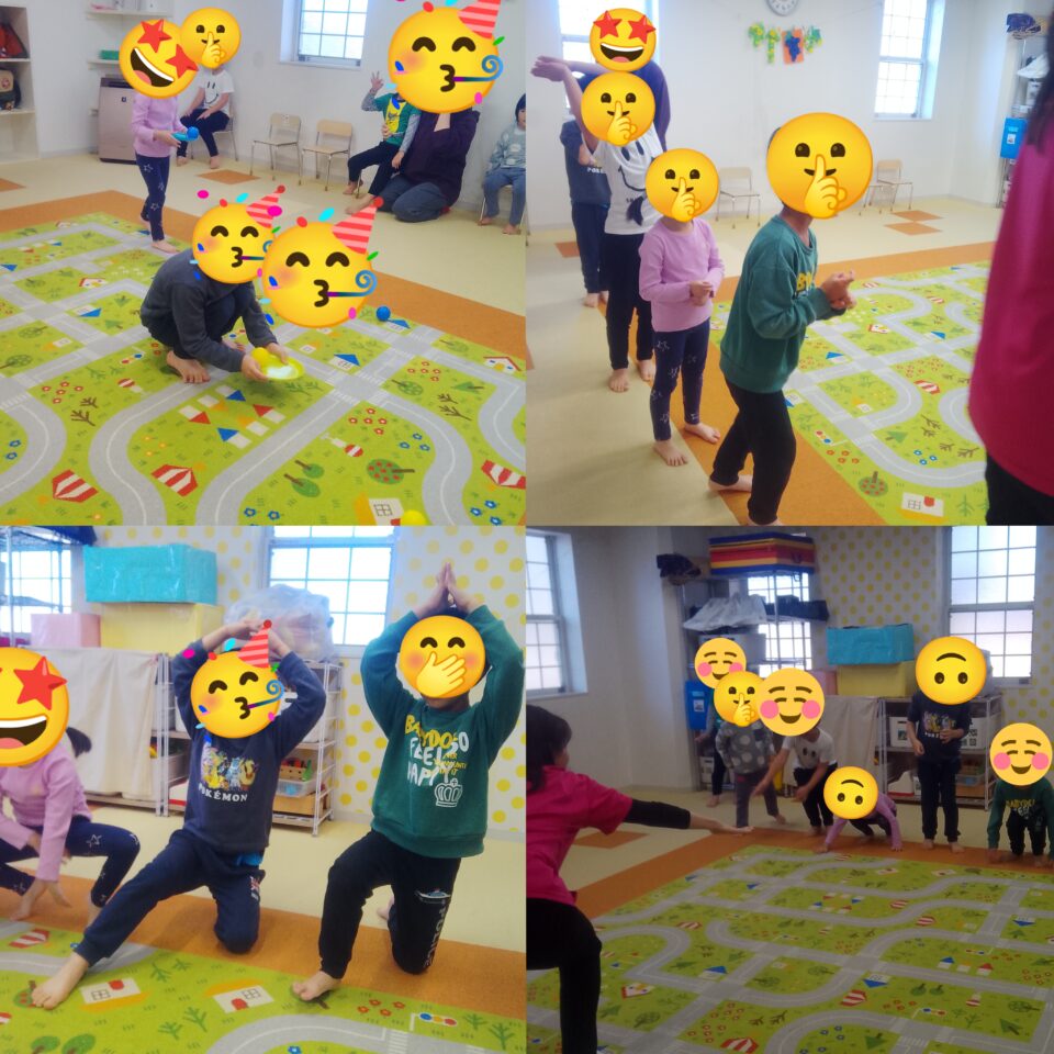 他にもボールを拾いながら止まったり、手裏剣投げゲームをしたりとみんなで忍者の修行を楽しみました!