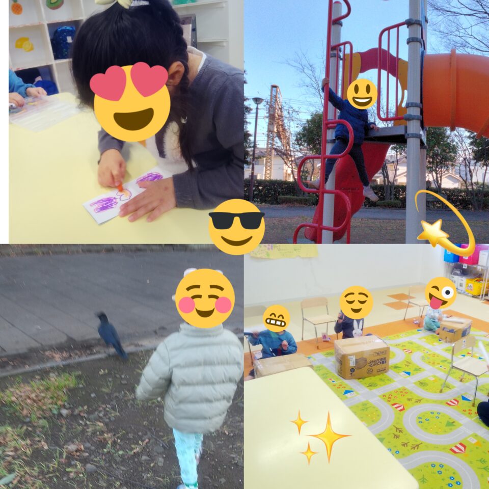 ハートやにこちゃんマーク、グルグルなぐり描きなどそれぞれ自由にお絵描きを楽しみました(*^_^*)