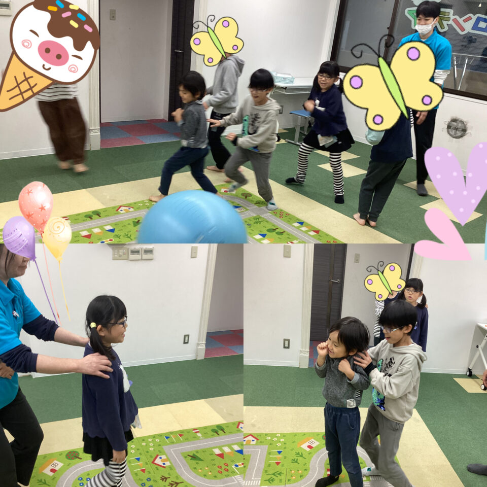 ボールをよけたり、タイミングを見て走り抜けたりと、体をたくさん動かして大笑いの連続!バランスボールならではのゆっくり転がる動きが楽しく、最後まで笑顔いっぱいの活動になりました🎵🚂🌈