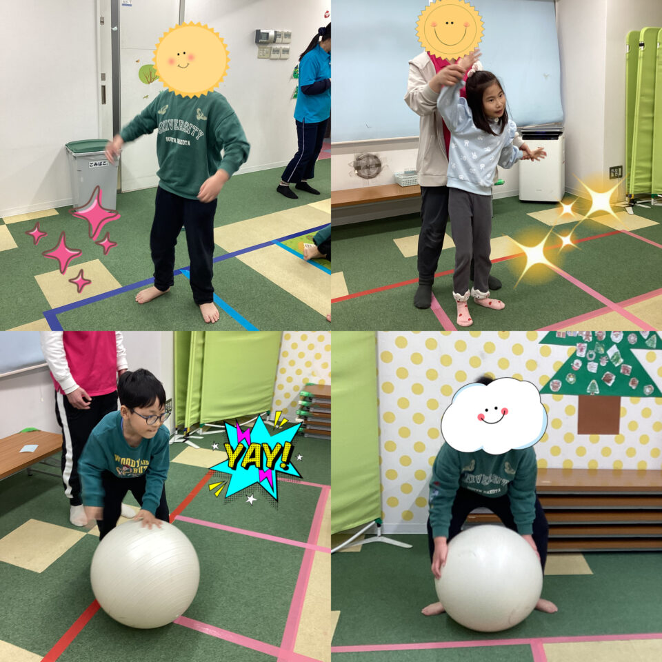 今日は、テレビの映像をお手本にしながら3曲のエクササイズに挑戦し、そのあとはバランスボールを使った転がしドッヂボールで思いきり体を動かしました📺🎶💪✨