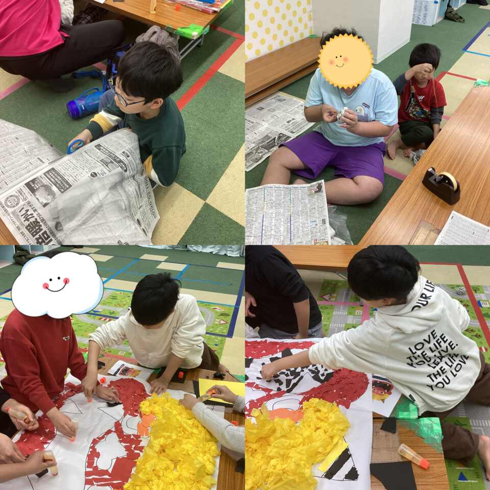 今回は、節分に向けて「大きな鬼の壁面製作」**を行いました!