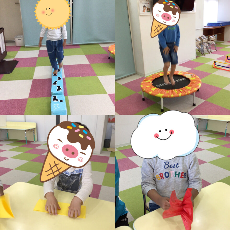 ぞうきん掛けは最後の方では滑り台に変更しながら、順番を守って身体を動かすことができました!
