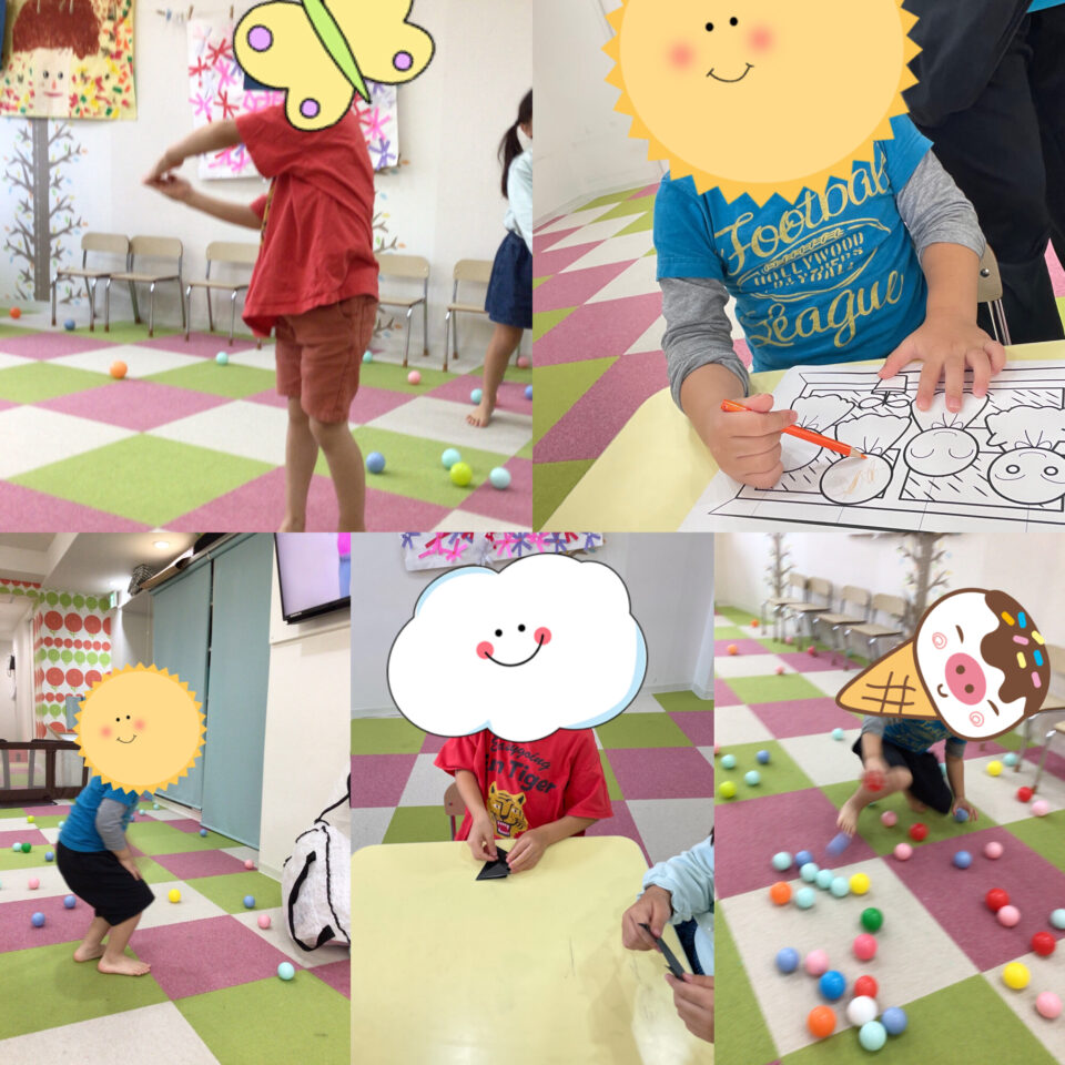 曲はみんなの大好きなジャンボリーミッキー♬曲が流れいてる間ダンスをして、止まったらボールを拾い袋に入れに行きます。