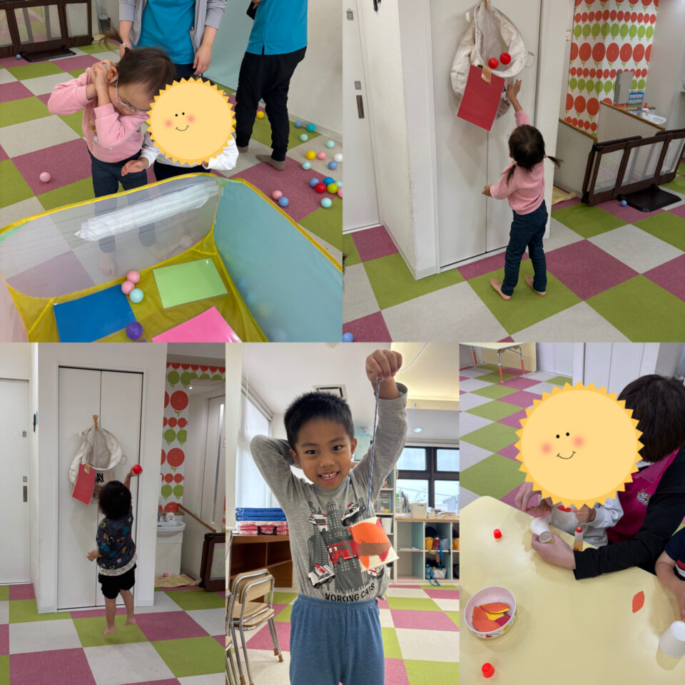 ちょっとおふざけが入ってしまったり、たまにうっかり違うボールを入れてしまうこともありましたが、すぐに違うことに気付くお友だちもおり、改めて入れ直しをすることができました💦