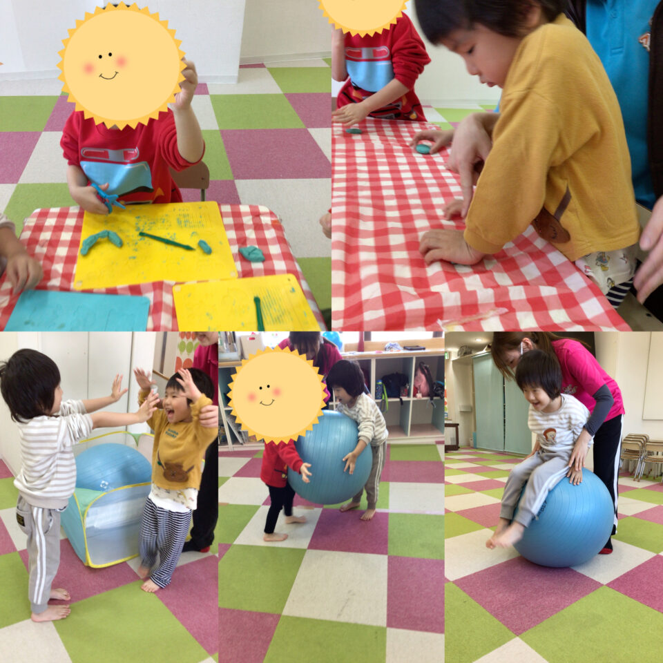 お友だちと行なうことも難しそうな様子が見られましたが、指導員がサポートをしながら最後までバランスボールを運ぶことができました❤運んだ後はタッチをして成功を喜んでいます!