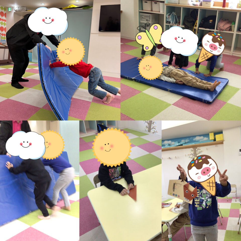 そして始まりの会をして、午前中の集団活動は「マット運動」を行いました(#^^#)