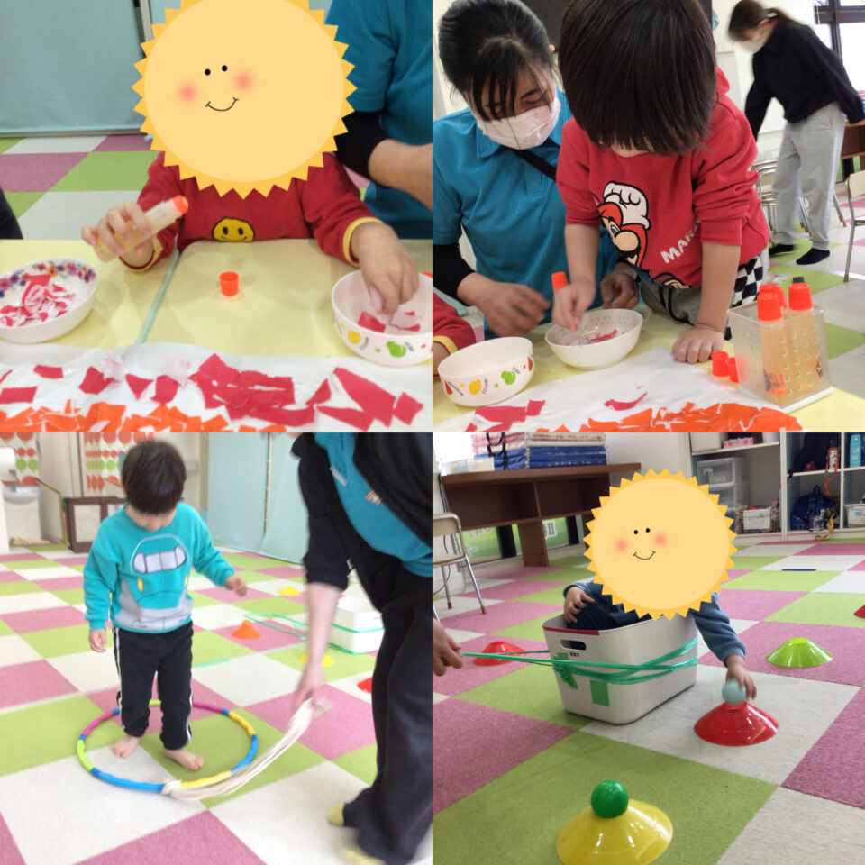 切り込みを入れるなどのサポートを通じて「自分でできた!」という達成感を味わえるよう支援していきます☺️💗
