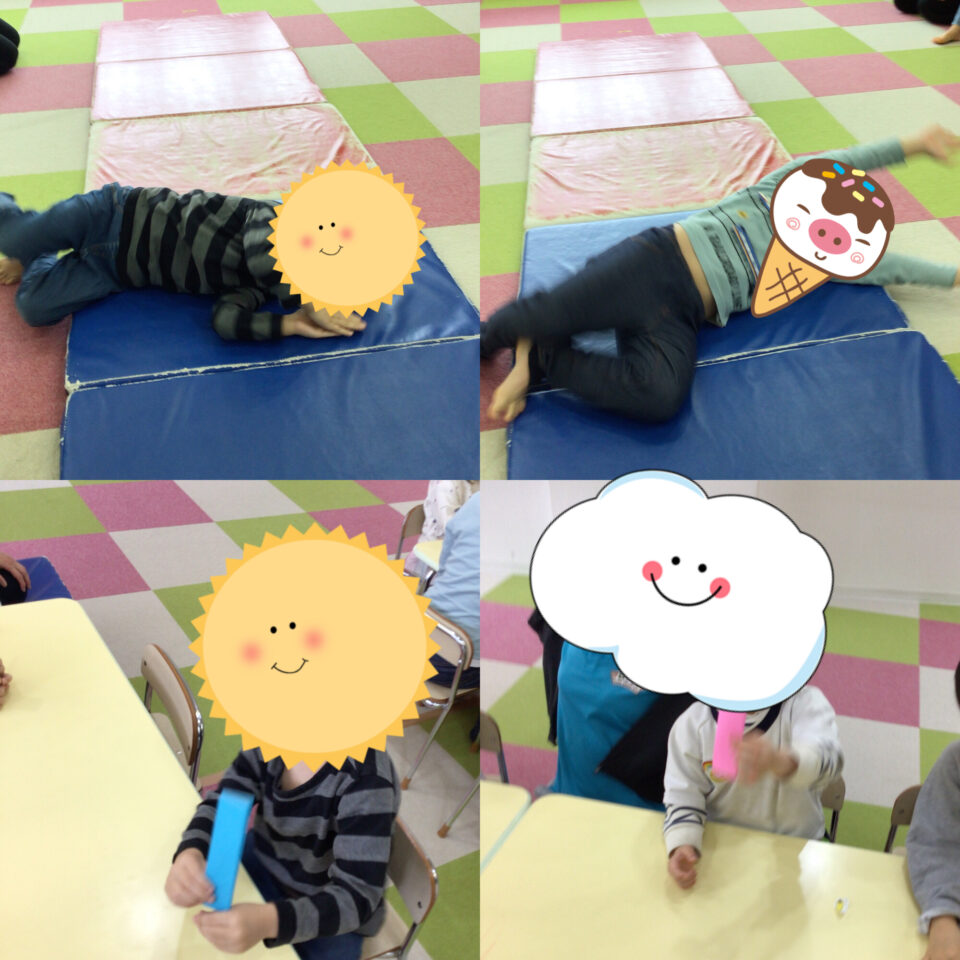 少し難しいお友だちも、ハイハイだったり、好きな動物の動きを真似しながら頑張って取り組む姿が見られています。