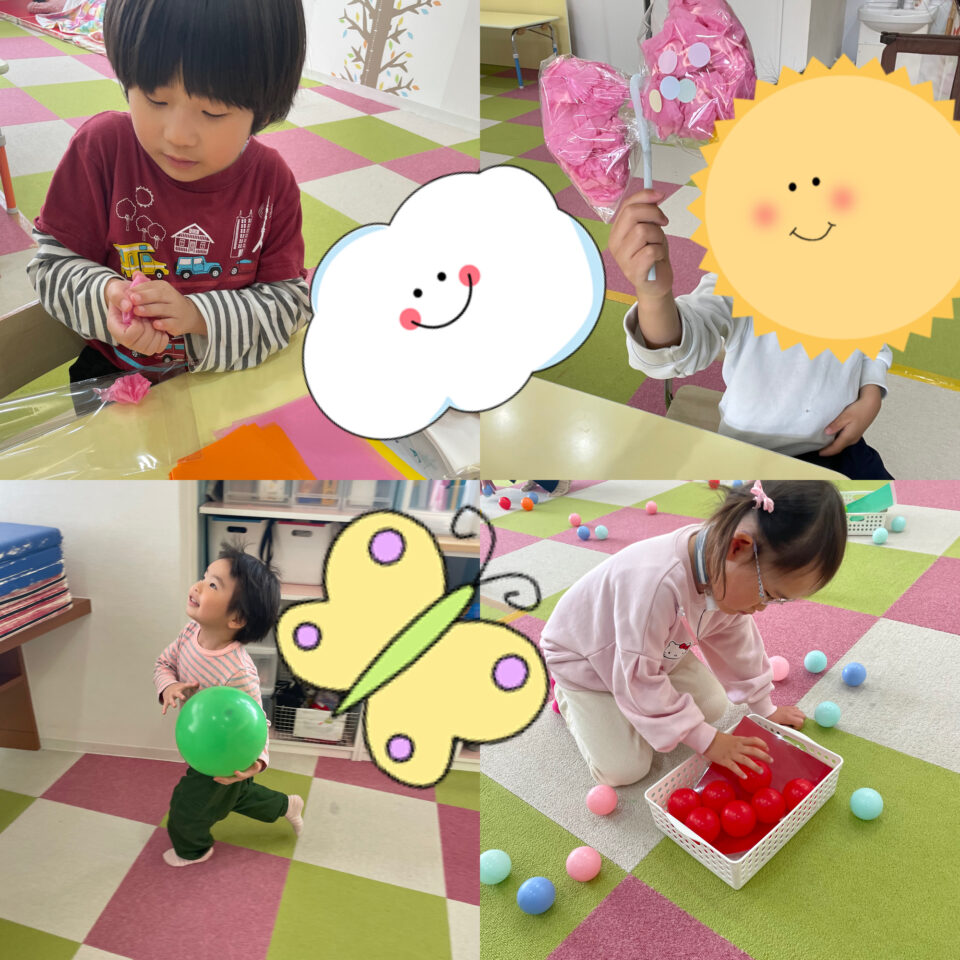 今日の活動は「色分けボールと風船遊び」です✨