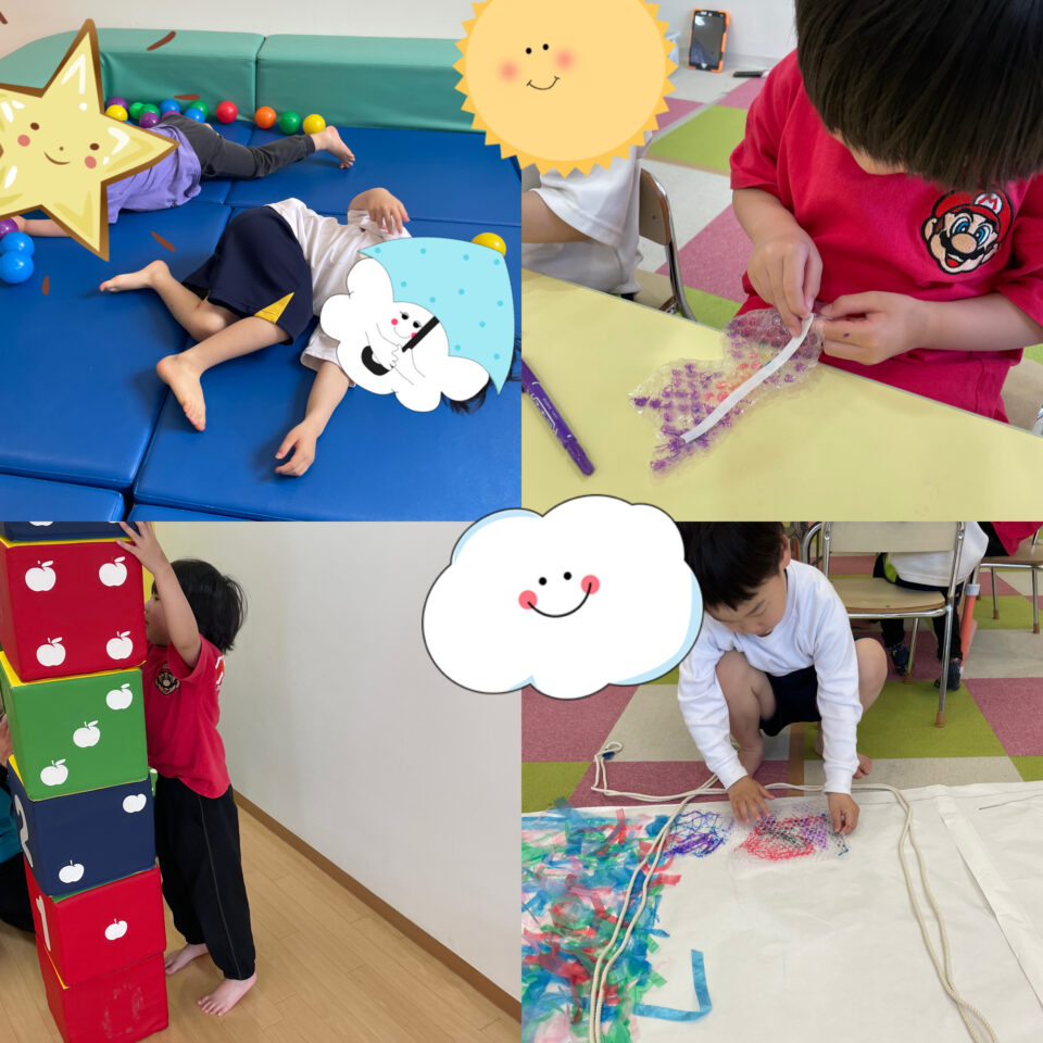 緩衝材特有のポコポコした感触は、触覚に心地よい刺激を与え、感覚統合を促します。