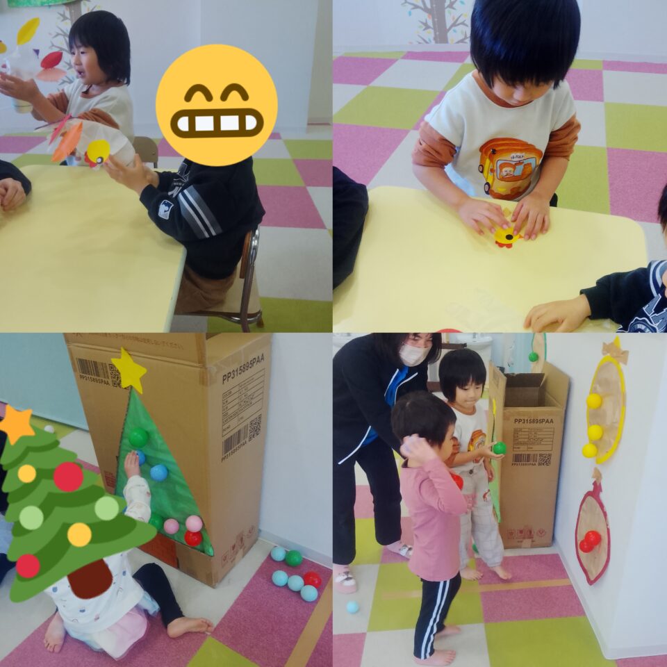 段ボールの三角は、クリスマスツリーに見立ててボールで飾り付けをお願いしました🎄✨✨