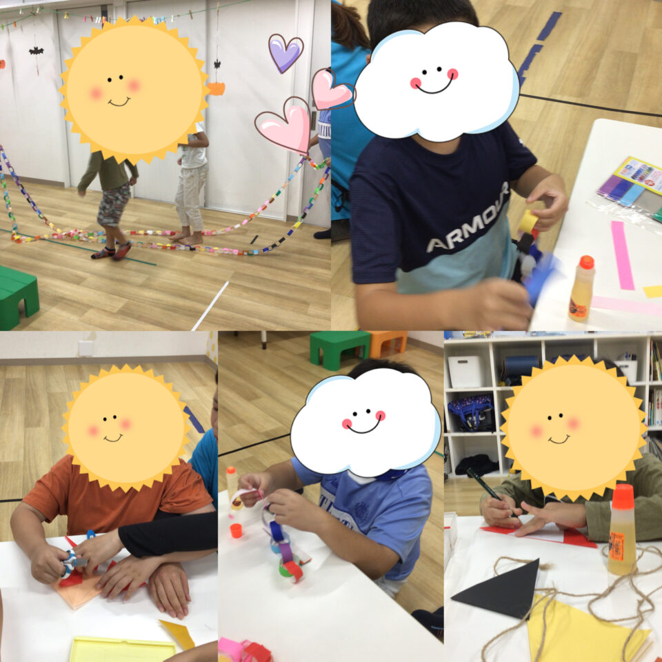 途中集中が切れてあきらめそうになる子もいましたが、クールダウンしてから戻ってきたり、目標を自分の身長の高さまでと決めて行ってみたりと自分なりに考えて最後まで行うことができていました👏👏最後にみんなでつなげると壁にぴったりと収まるくらい長いサイズの輪飾りが完成し、みんなで大喜びするシーンもありました😊✨