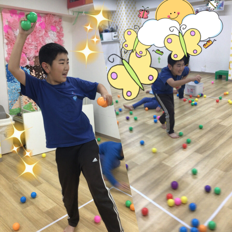 鬼が「だるまさんがころんだ」と言っている間に小さなボールを箱の中に急いでしまいます🤩