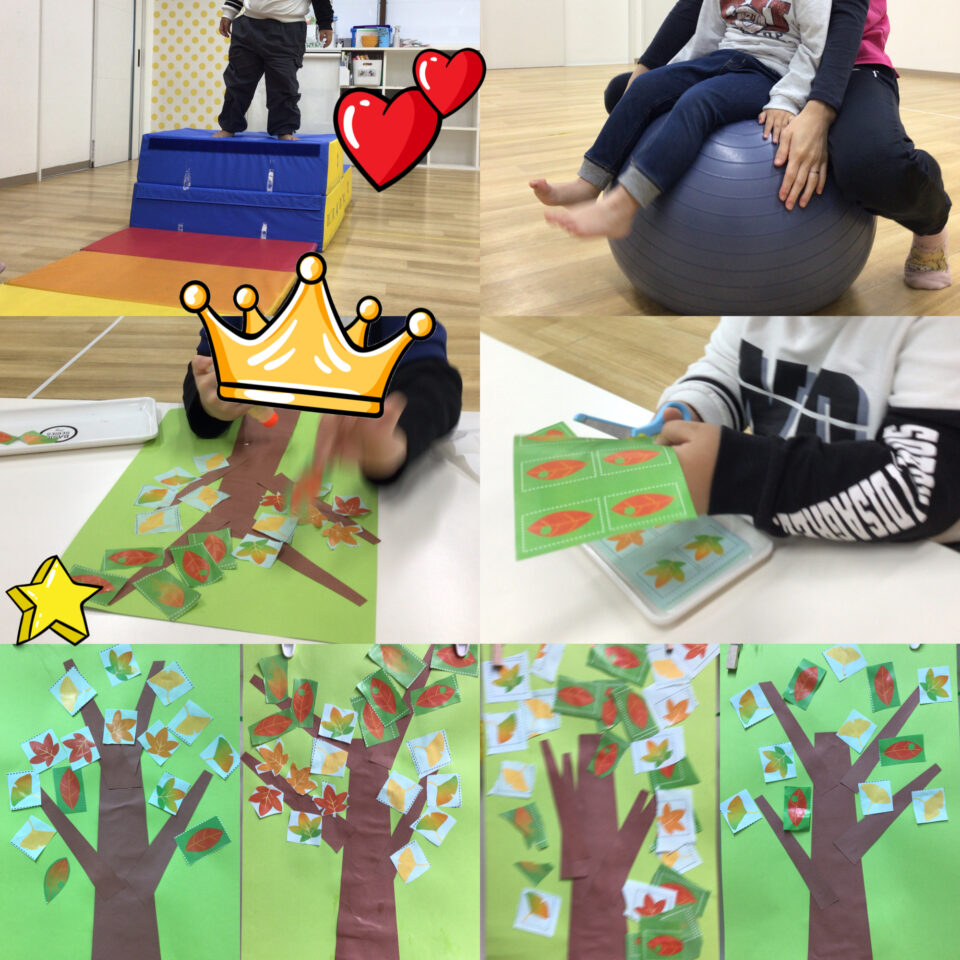 ハサミでモミジやイチョウをチョキチョキ切ります✂