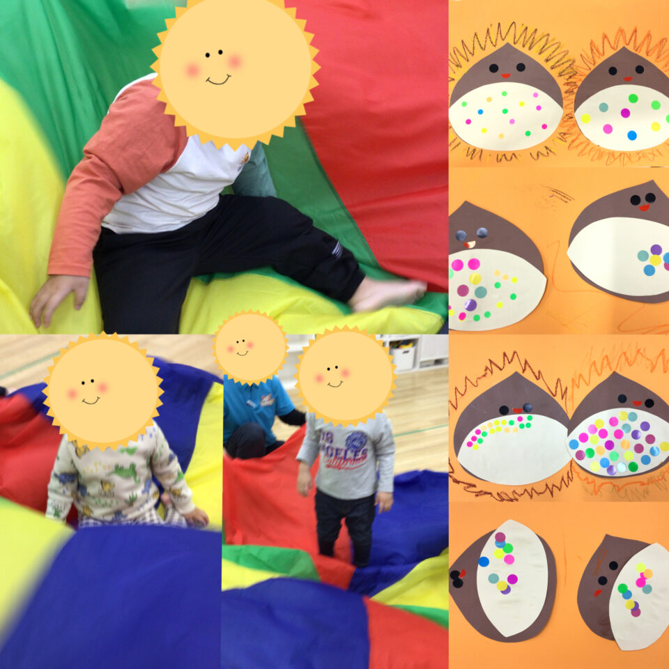 午前の活動はパラバルーン遊びをしました☂カラフルな色に目がキラキラ✨